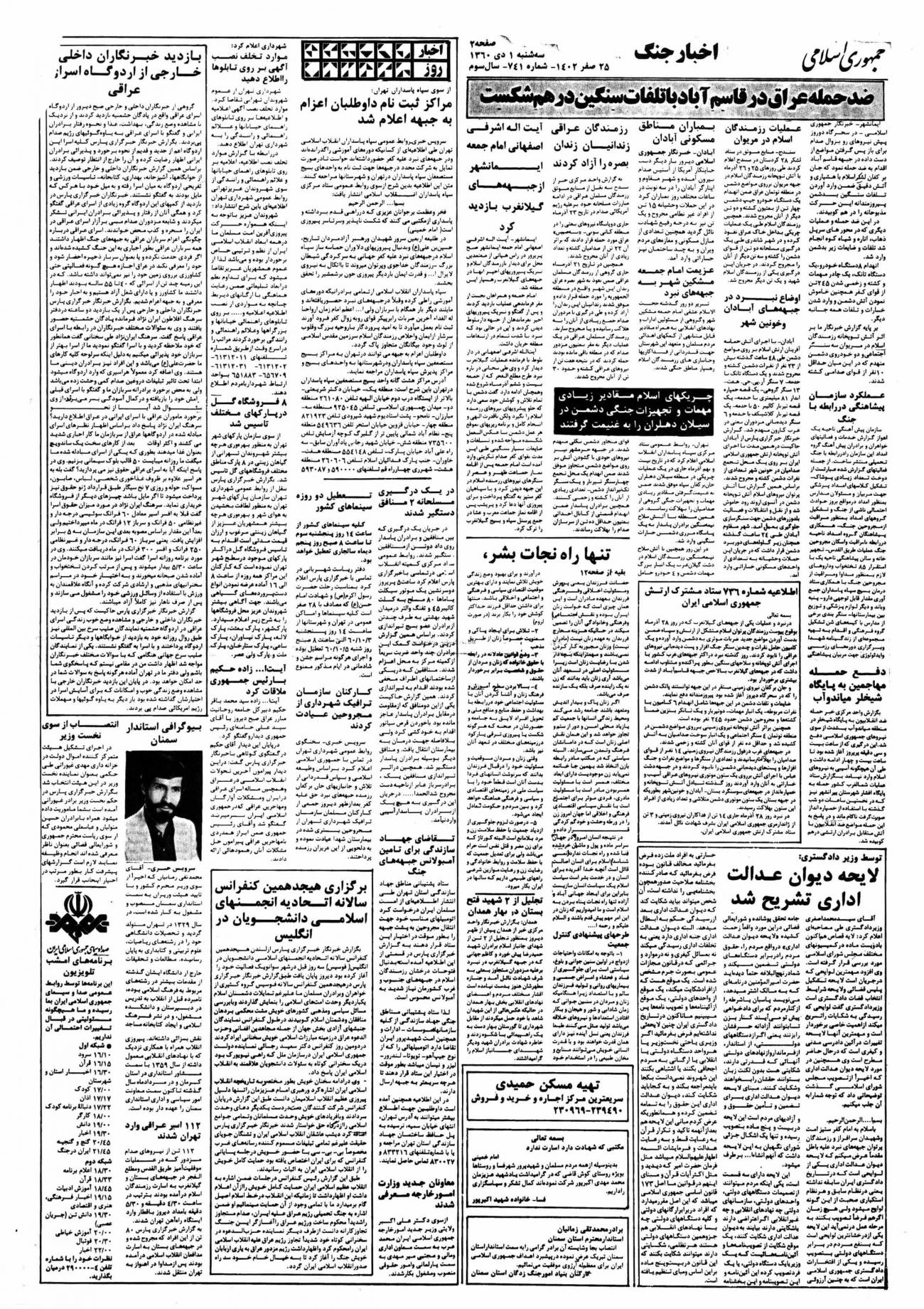 - ۱۳۶۱/۱۰/۱ رئیس جمهور: دشمن را از امکان ارسال آتش از راه دور محروم می کنیم