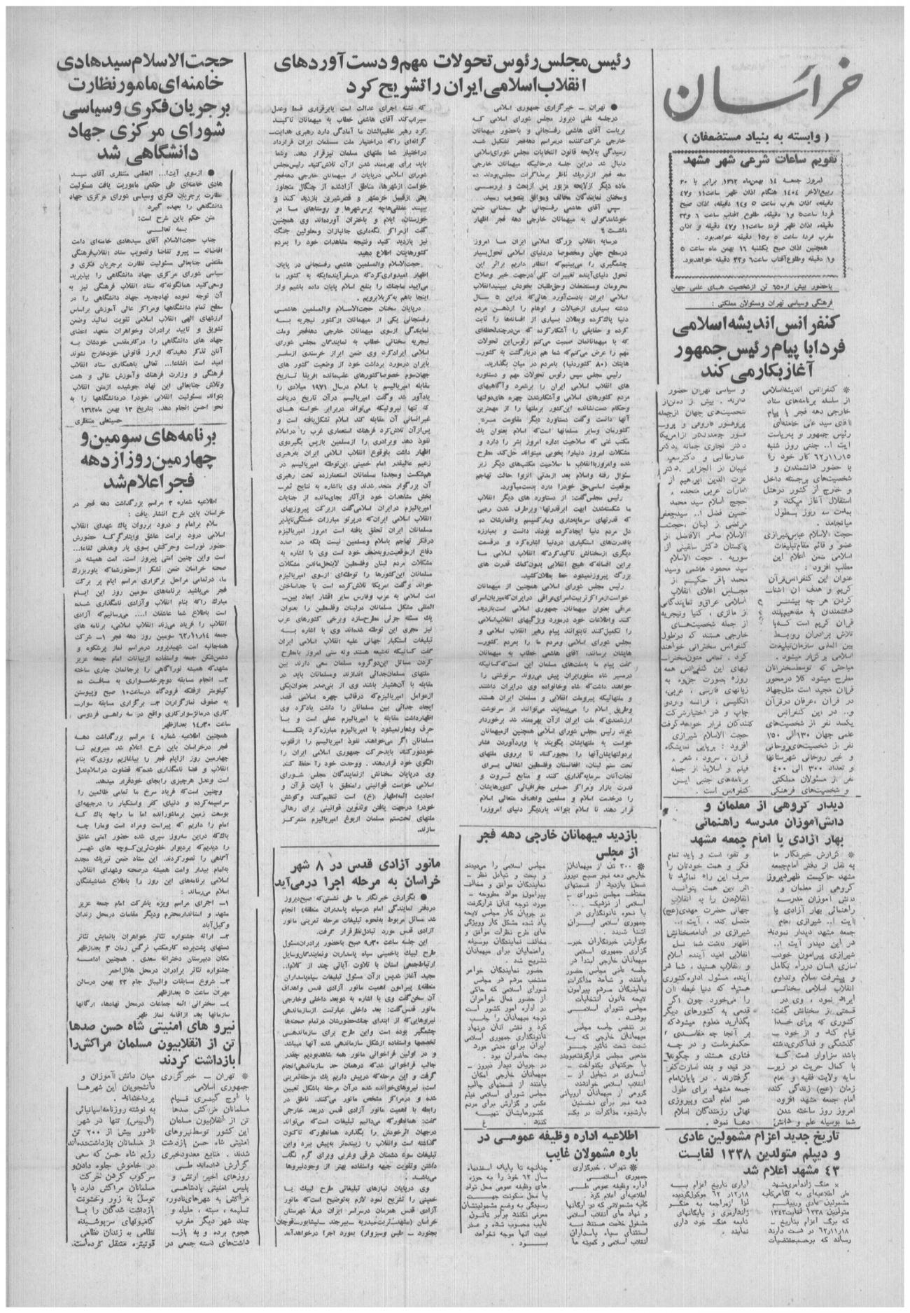 - ۱۳۶۲/۱۱/۱۴ باحضور ۶۵۰تن از شخصیت های علمی جهان فرهنگی و سیاسی تهران و مسئولان مملکتی: کنفرانس اندیشه اسلامی فردا با پیام رئیس جمهور اغاز بکار می کند