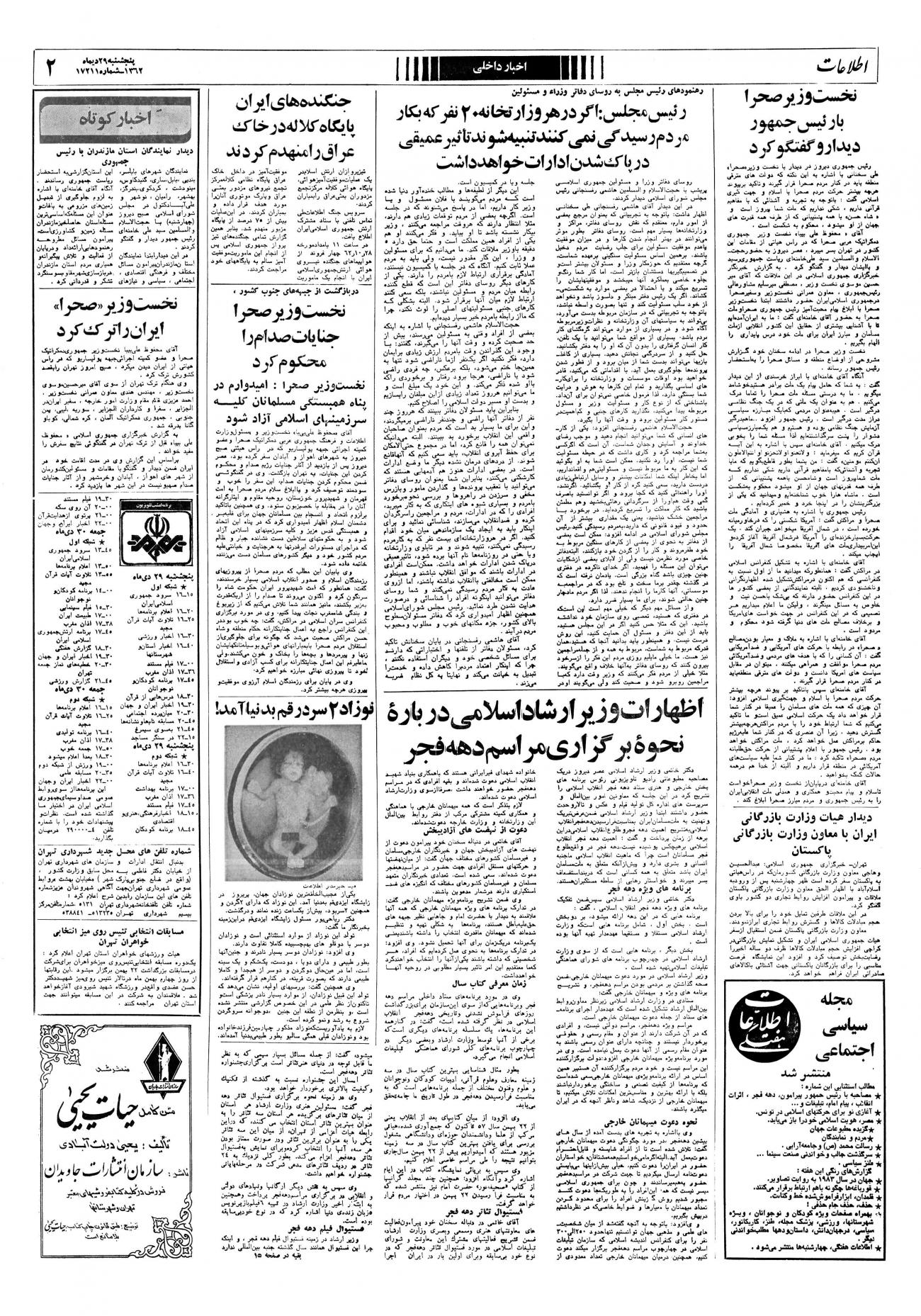 - ۱۳۶۲/۱۰/۲۹ نخست وزیر صحرا با رئیس جمهور دیدار و گفت و گو کرد