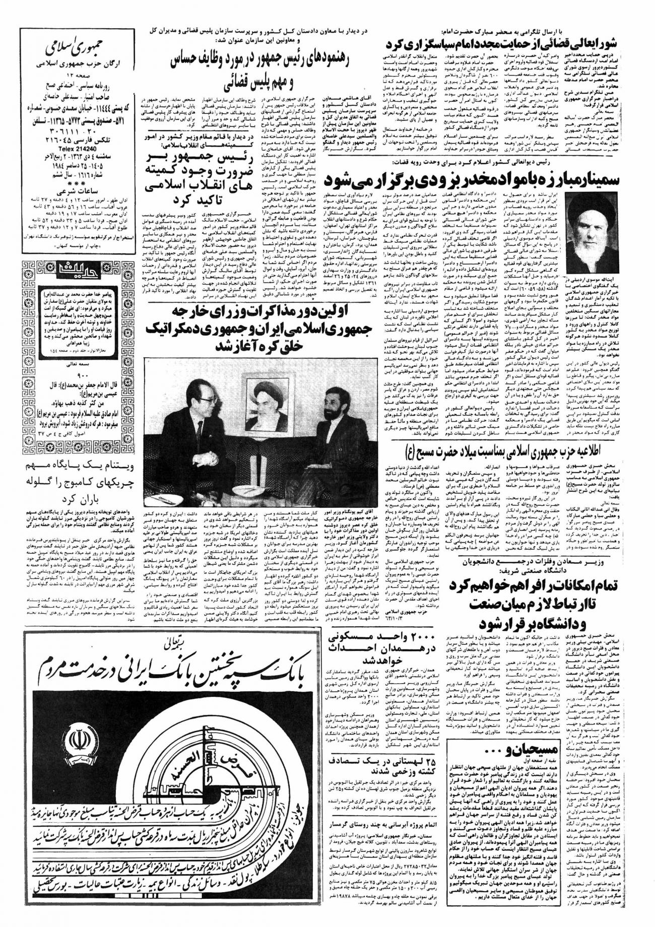 - ۱۳۶۳/۱۰/۴ رئیس جمهوربرضرورت وجودکمیته های انقلاب اسلامی تاکیدکردند