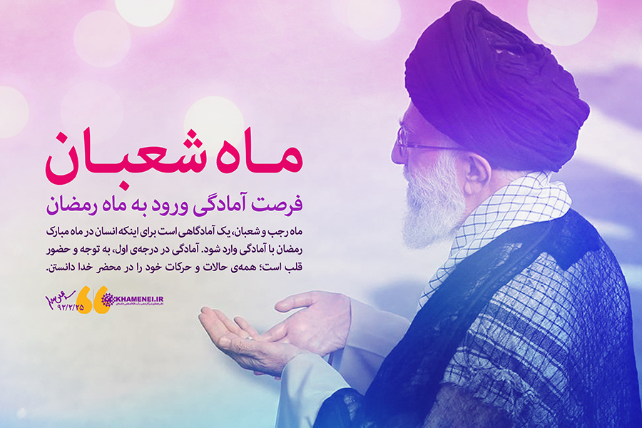 حضرت آیتالله خامنهای: «ما وارد ماه شعبان شدیم؛ ماه عبادت، ماه توسّل، ماه مناجات؛ وَ اسمَع دُعائی اِذا دَعَوتُک، وَ اسمَع نِدائی اِذا نادَیتُک؛ فصل مناجات با خدای متعال، فصل مرتبط کردن این دلهای پاکْ با معدن عظمت، با معدن نور؛ این را قدر باید دانست. این مناجات شعبانیّه یک تحفهای است که در اختیار ما قرار داده شده است. خب ما دعا خیلی داریم، همهی این دعاها هم پر از مضامین عالی است، امّا بعضی یک برجستگی خاصّی دارند... ماه شعبان یک چنین ماهی است؛ دلهای پاک، دلهای نورانی، دلهای جوان، از این موقعیّت بهره بگیرند، استفاده کنند، رابطهتان را با خدا قوی کنید.» ۱۳۹۲/۳/۲۲