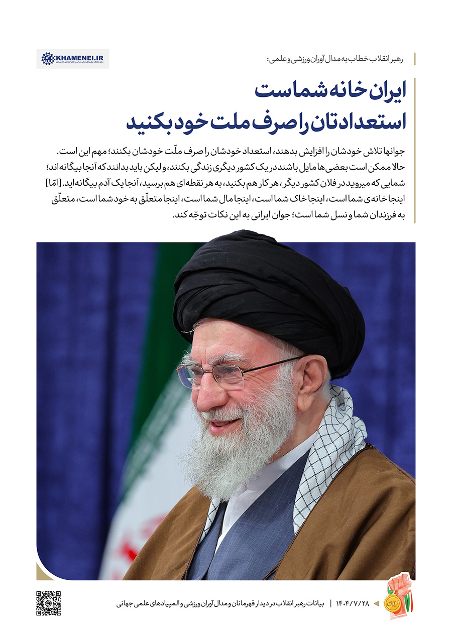 پیام تلویزیونی رهبر انقلاب برای تشکر از حضور میلیونی ملت بزرگ ایران در راهپیمایی یومالله ۲۲ بهمن ۱۴۰۴