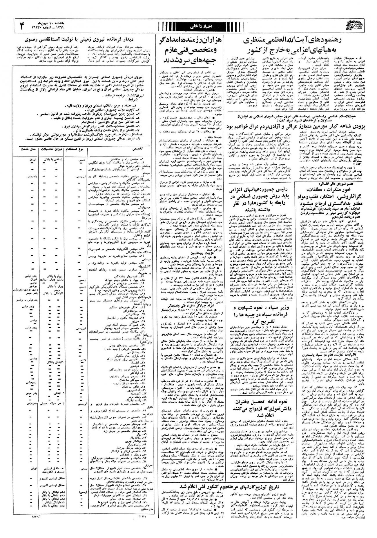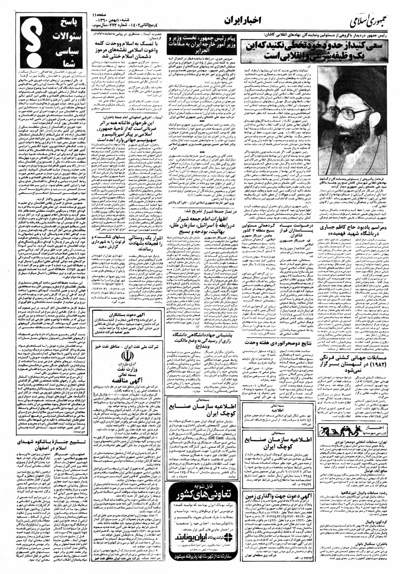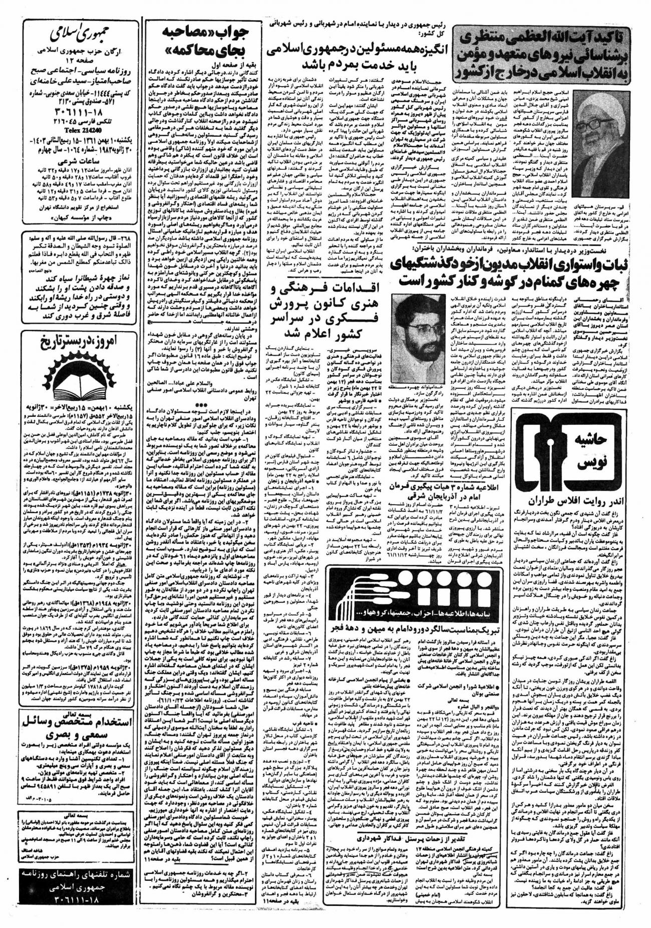 - ۱۳۶۱/۱۱/۱۰ رئیس جمهوری: دل مردم را وقتی به دست می آورید که طبق وظایف اسلامی عمل کنید