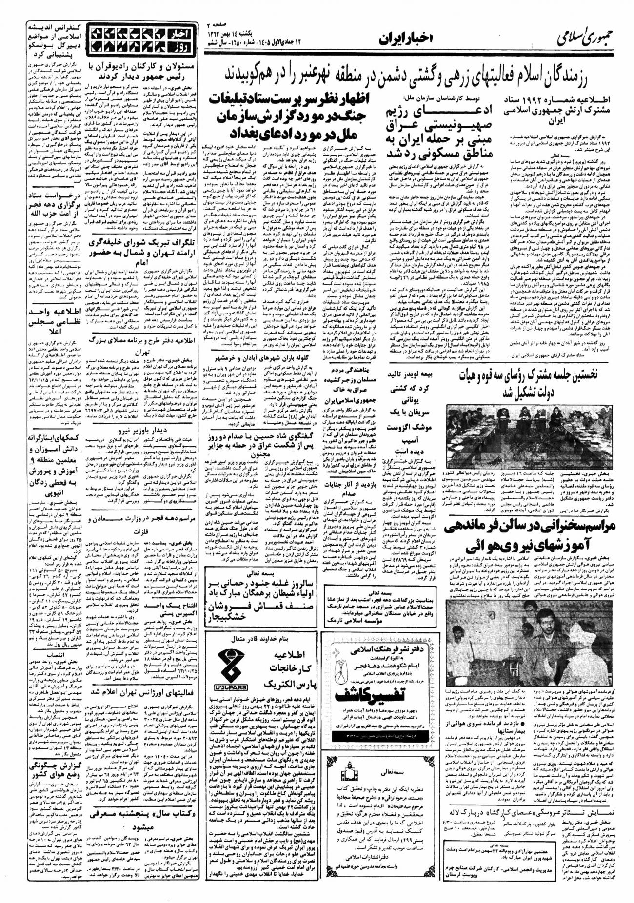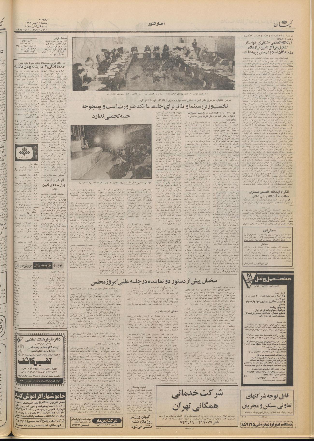 - ۱۳۶۳/۱۱/۱۴ جلسه هیأت دولت با حضور روسای قوای مقننه، مجریه و قضائیه دیروز در دفتر ریاست جمهوری تشکیل شد