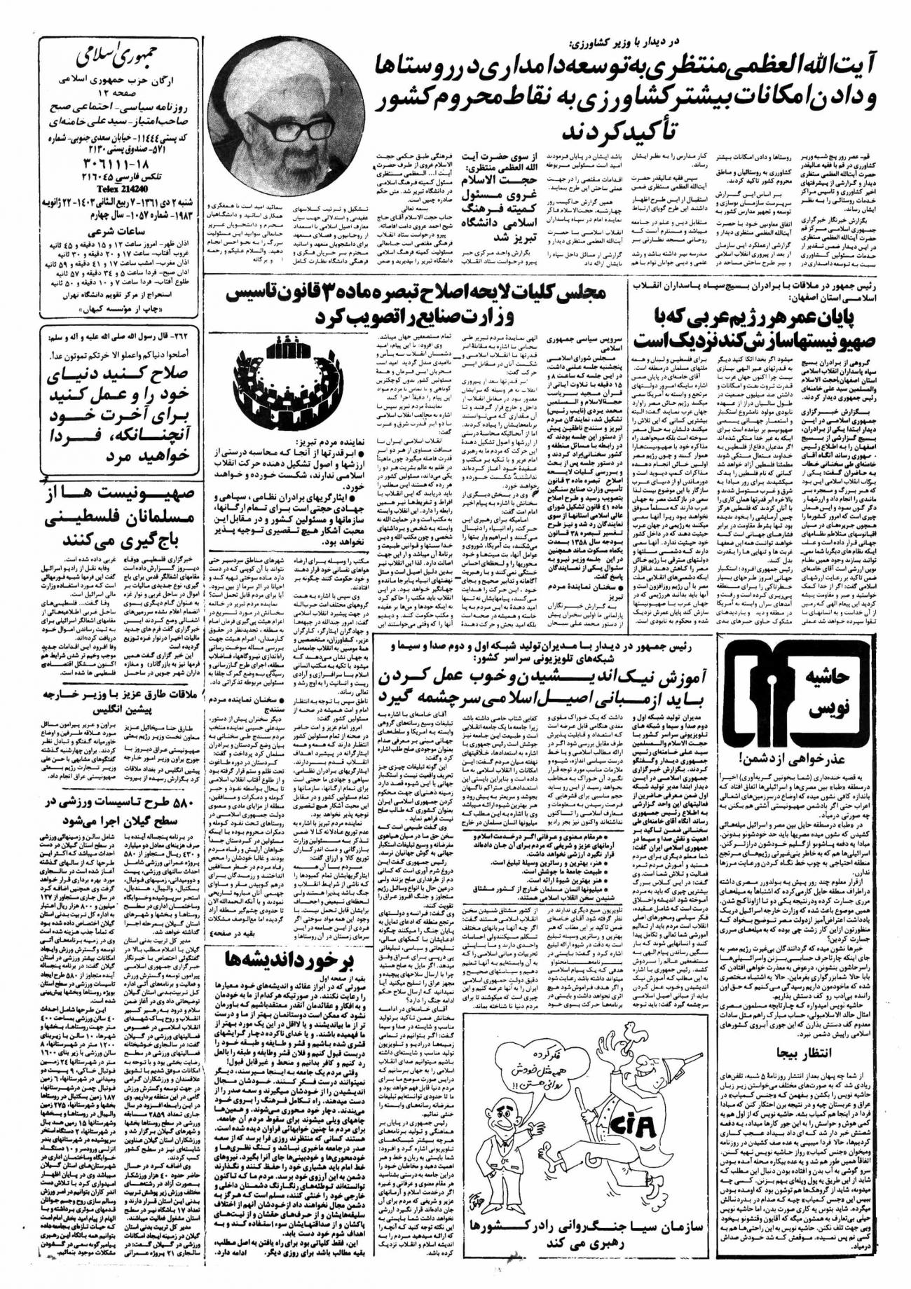 - ۱۳۶۱/۱۱/۲ رئیس جمهور در دیدار با مدیران تولید شبکه اول ودوم صدا و سیما و شبکه های تلویزیونی سراسر کشور:آموزش نیک اندیشیدن و خوب عمل کردن باید از مبانی اصیل اسلامی سرچشمه گیرد.