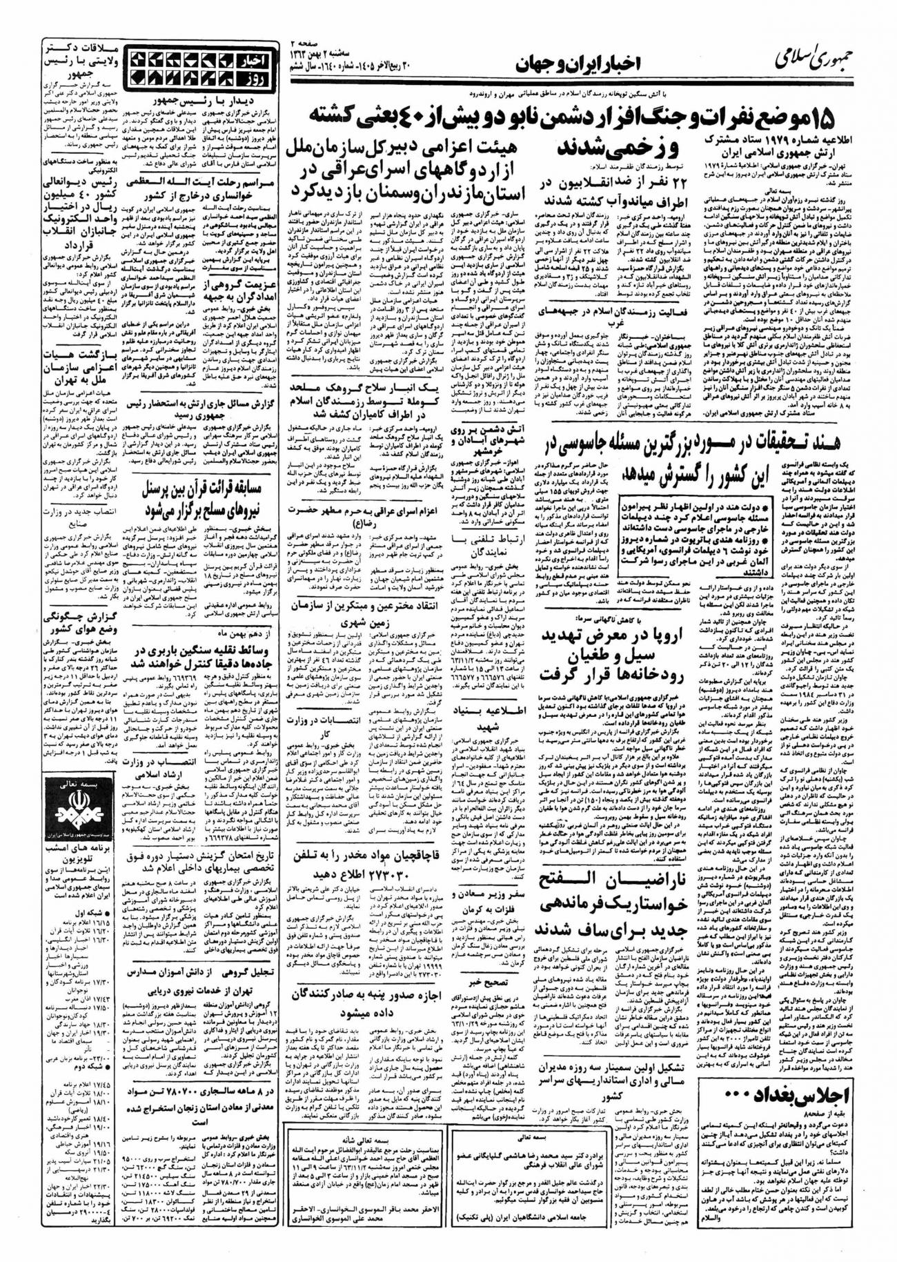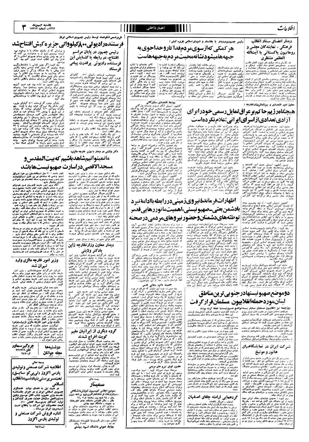 - ۱۳۶۲/۱۱/۲ فرستنده رادیوئی ۸۰۰ کیلو واتی در جزیره کیش توسط رئیس جمهور افتتاح شد