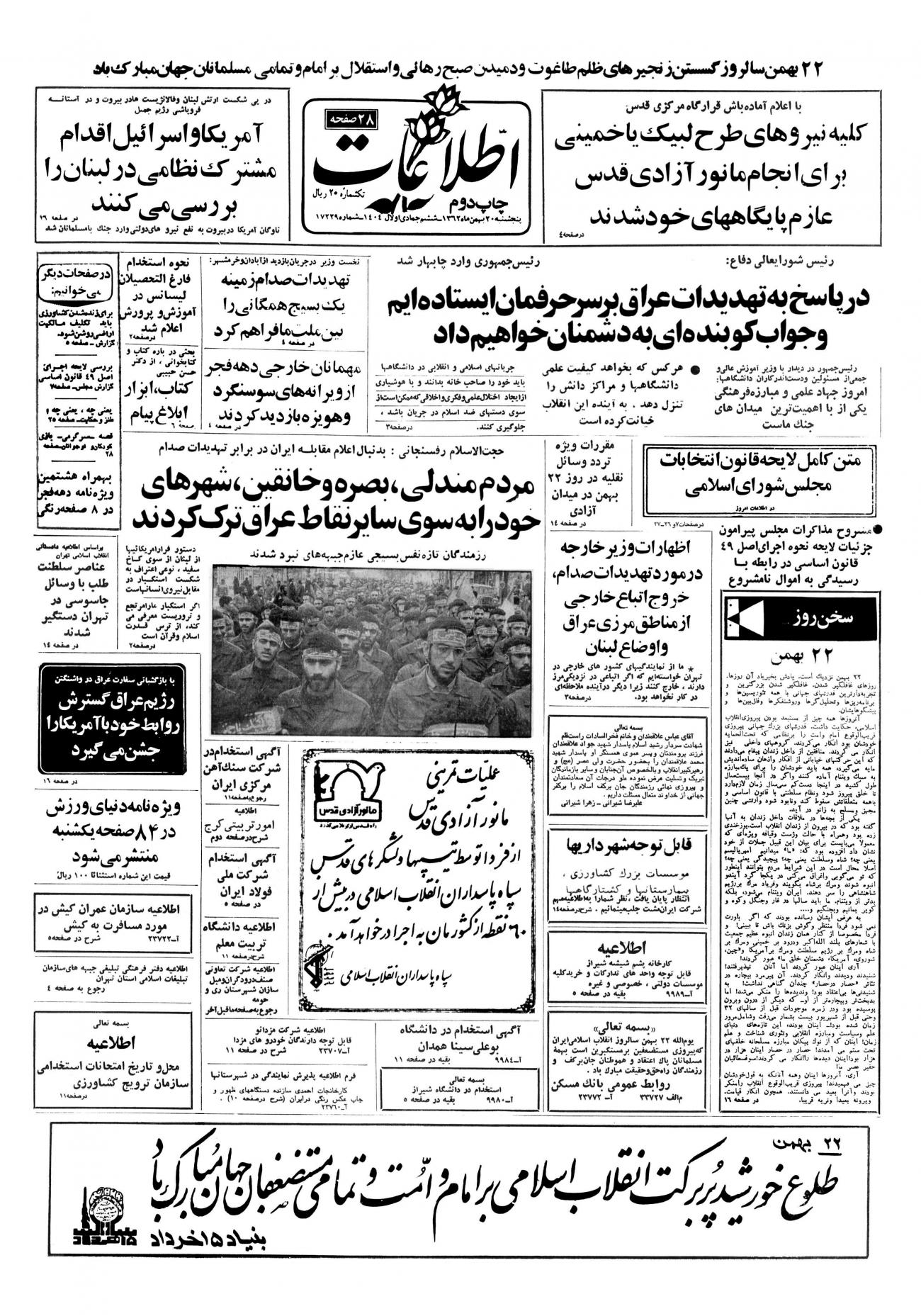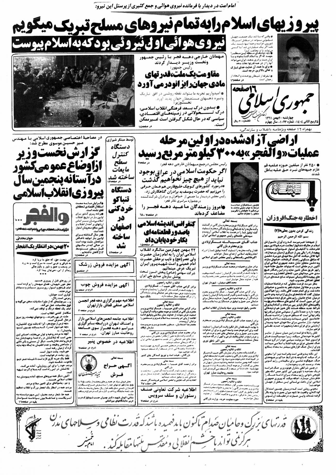 - ۱۳۶۱/۱۱/۲۰ رئیس جمهور: ما ابهت قدرت های بزرگ را در هم شکستیم