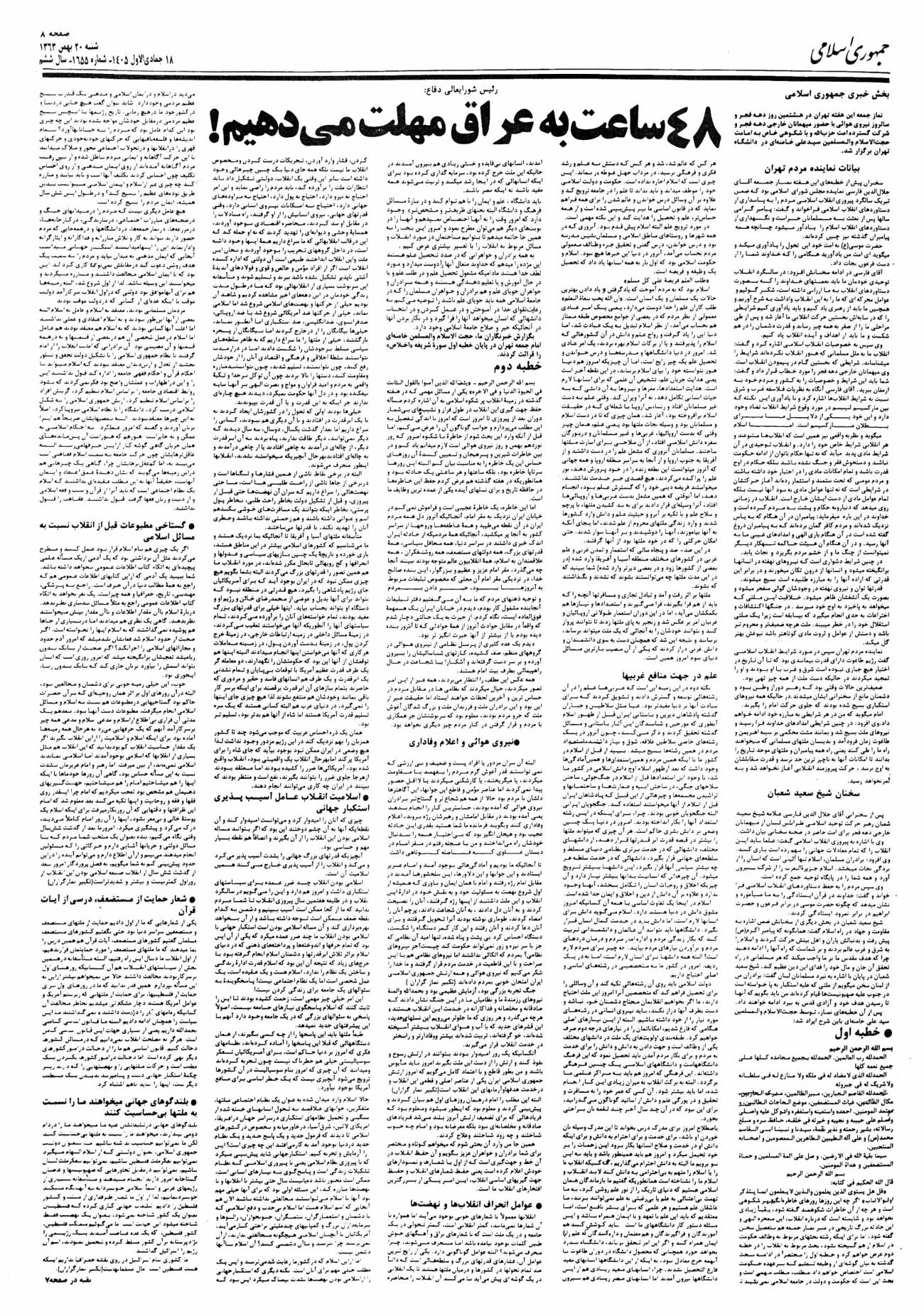 - ۱۳۶۳/۱۱/۲۰ ۴۸ساعت به عراق مهلت میدهیم