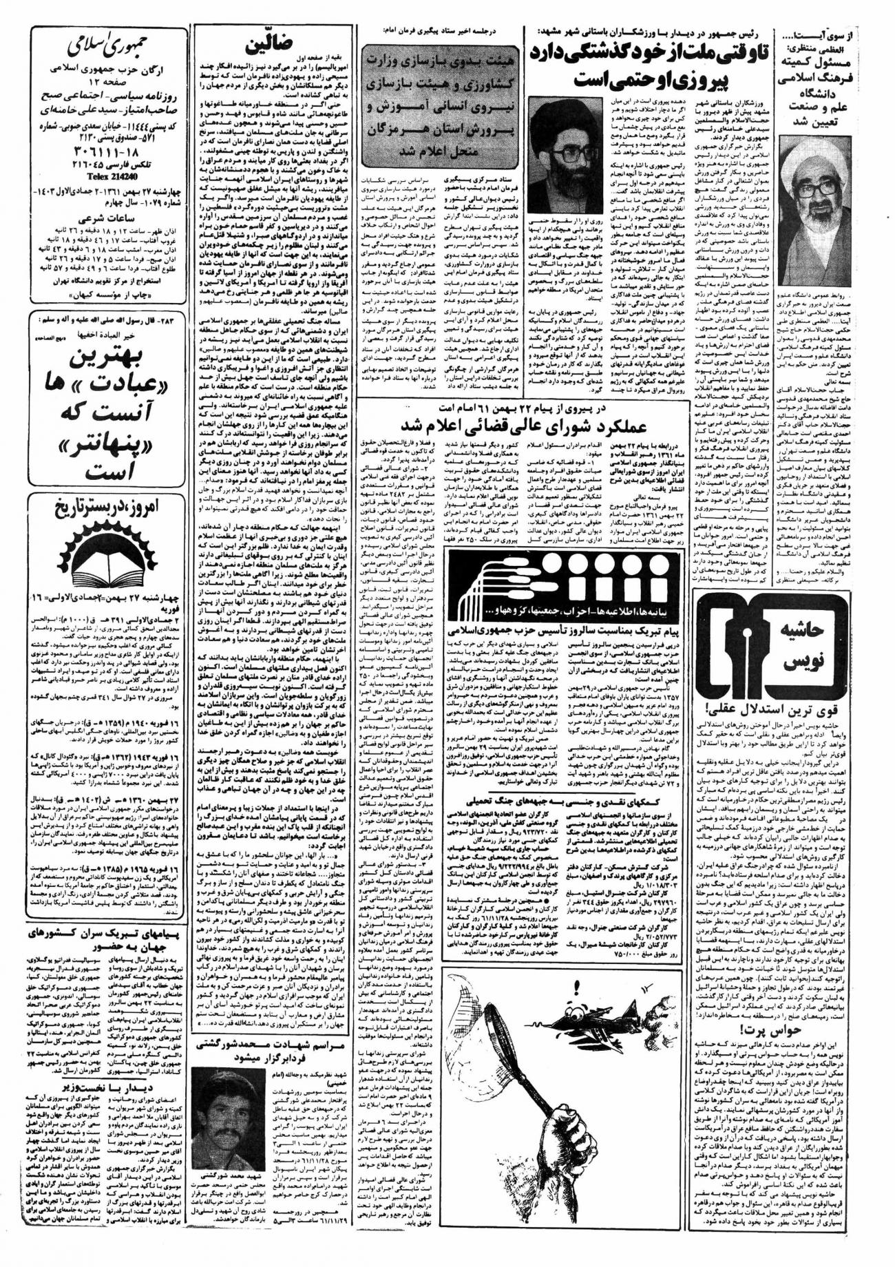 - ۱۳۶۱/۱۱/۲۷ پیامهای تبریک سران کشورهای جهان به حضور