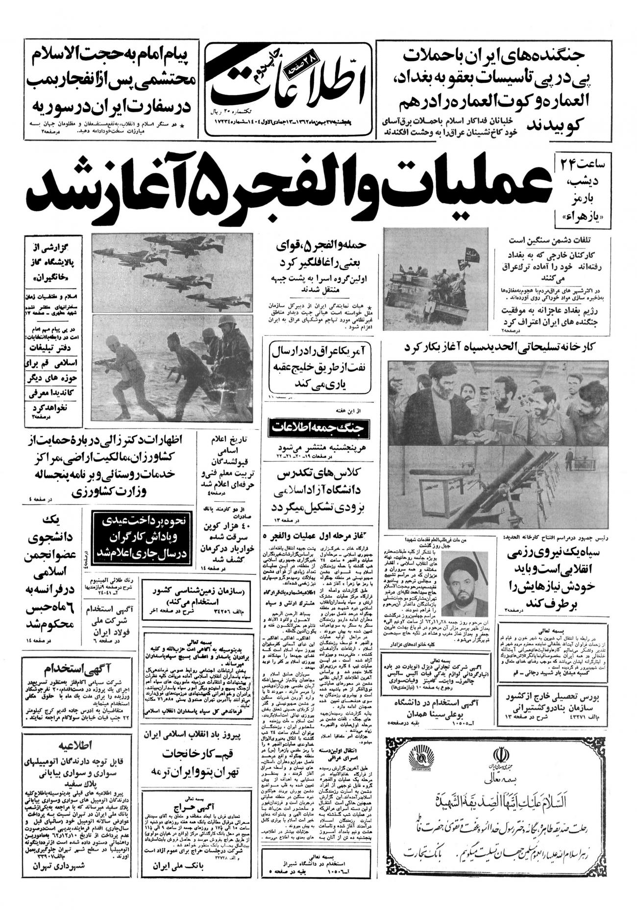- ۱۳۶۲/۱۱/۲۷ سپاه یک نیروی رزمی انقلابی است وبایدخودش نیازهایش رابرطرف کند