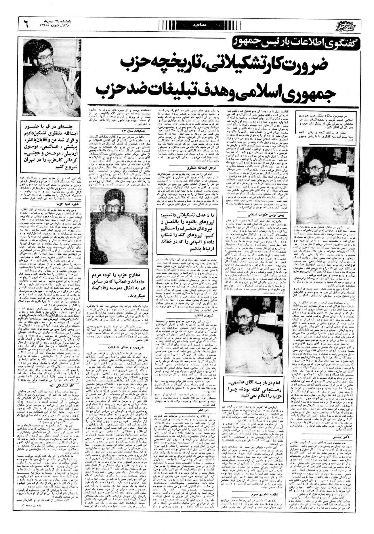 - ۱۳۶۰/۱۱/۲۹ گفت وگوی اطلاعات با رئیس جمهور: ضرورت کارتشکیلاتی، تاریخچه حزب جمهوری اسلامی و هدف تبلیغات ضدحزب