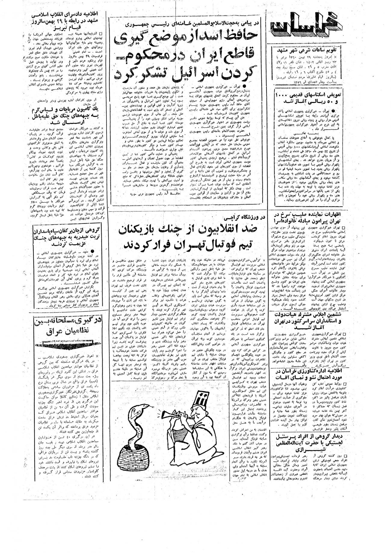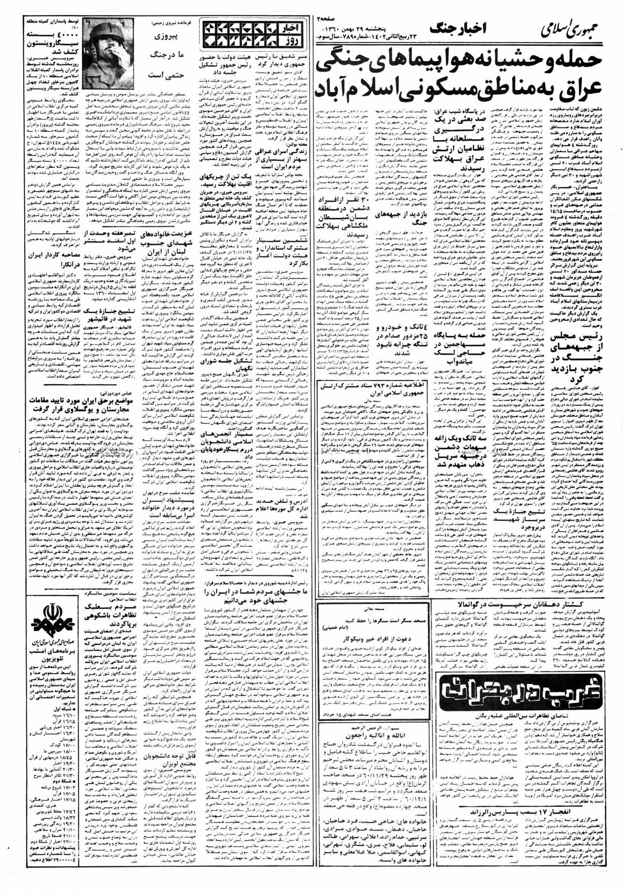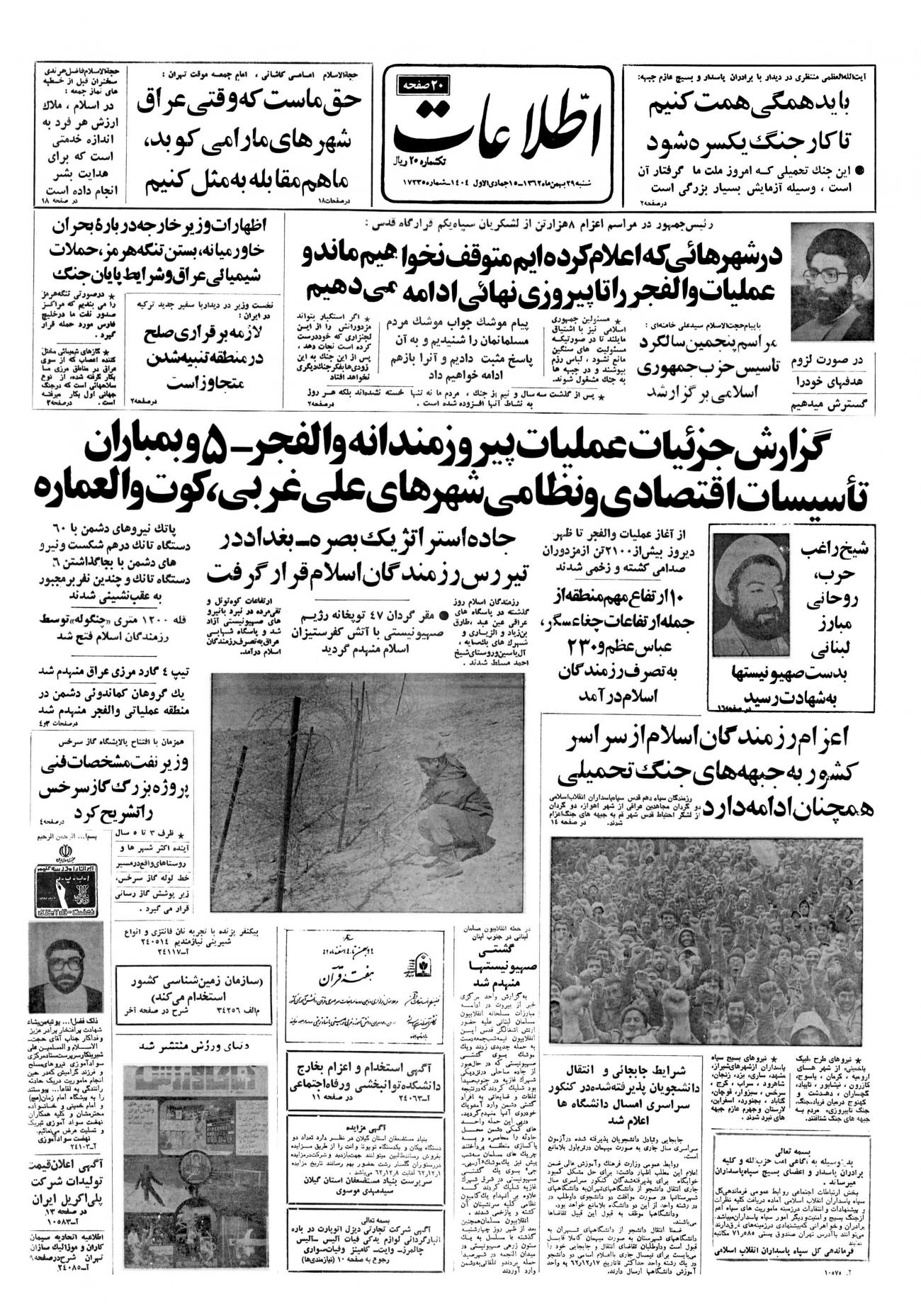 - ۱۳۶۲/۱۱/۲۹ درشهرهائی که اعلام کرده ایم متوقف نخواهیم ماندوعملیات والفجر راتاپیروزی نهائی ادامه میدهیم
