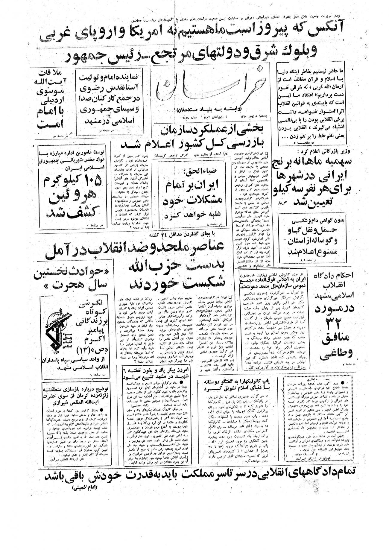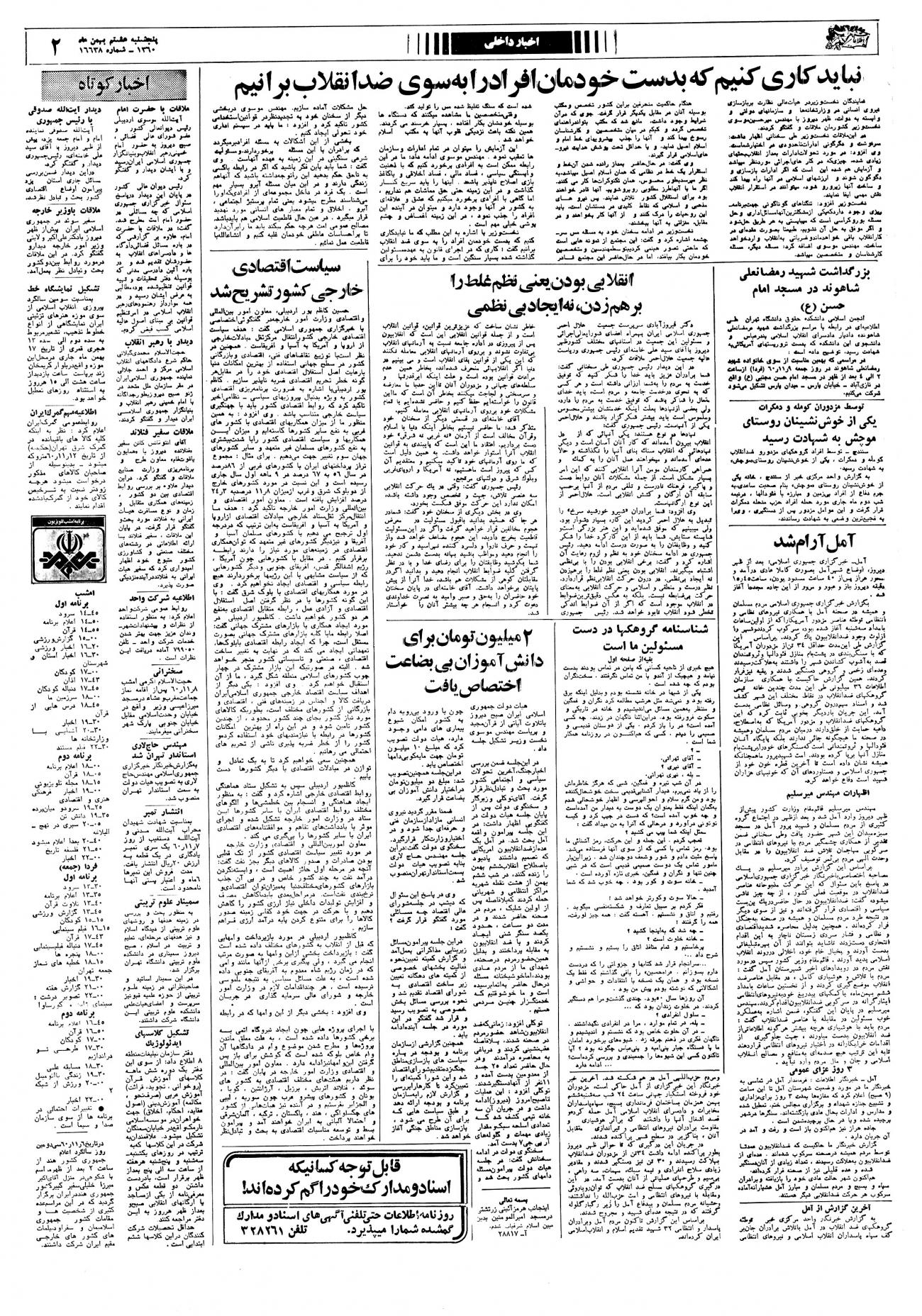 - ۱۳۶۰/۱۱/۸ انقلابی بودن یعنی نظم غلط رابرهم زدن، نه ایجاد بی نظمی