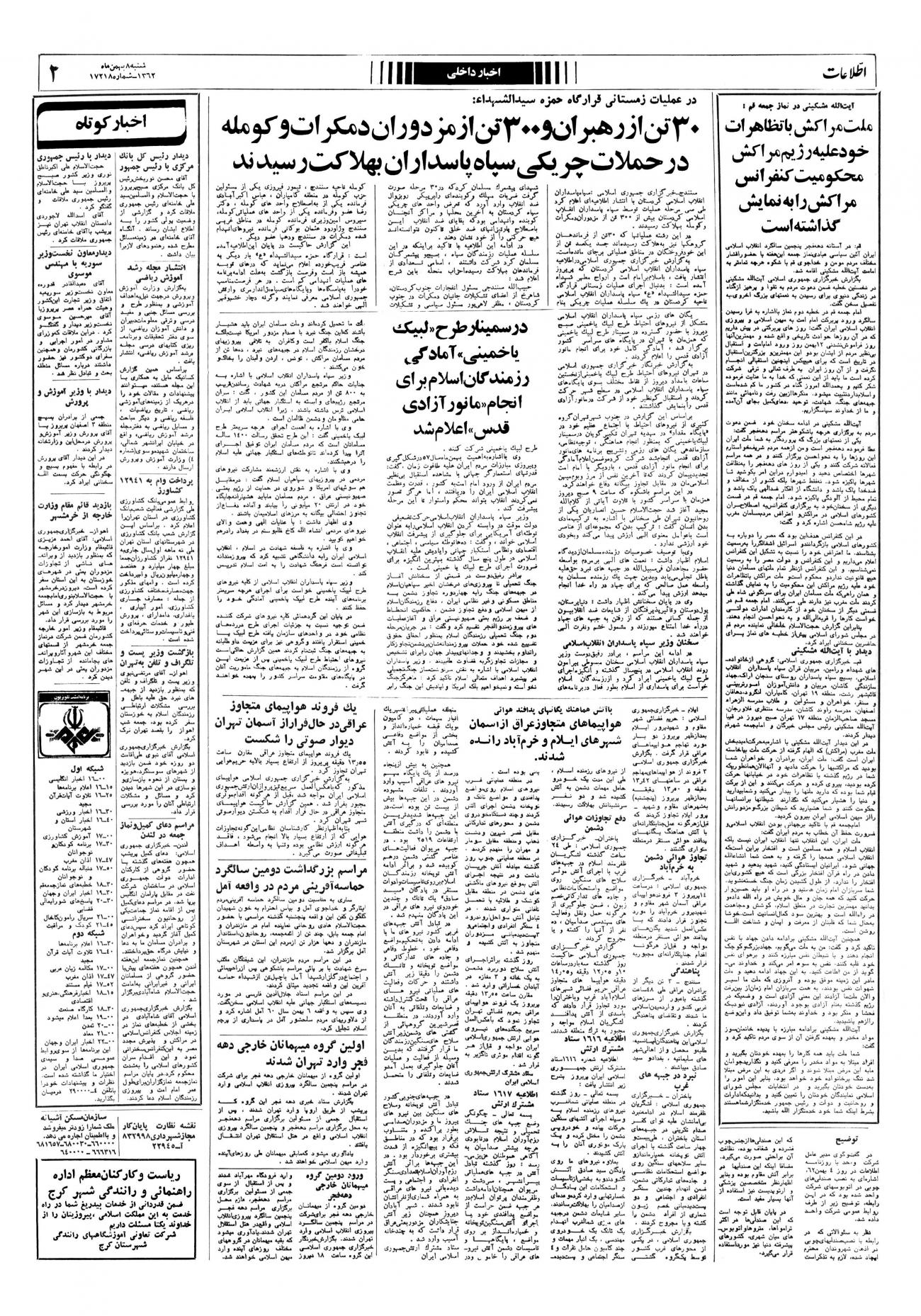 - ۱۳۶۲/۱۱/۸ رئیس جمهور در دیدار با معاون نخست وزیر سوریه: همه کشورهائی که خطر سلطه آمریکا را در منطقه احساس می کنند باید بصورت جدی به کمک یکدیگر بشتابند و در کنار هم باشند